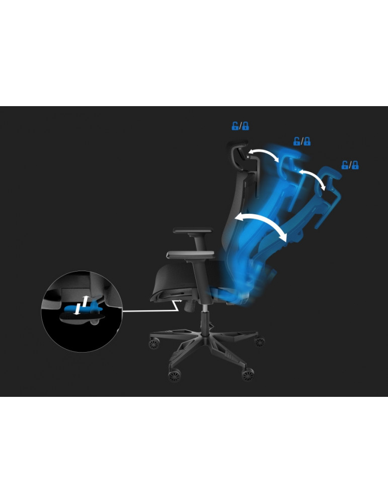 | Регулируеми възглавници | Three-stage lumbar adjustment, Height and angle adjustable mesh headrest |