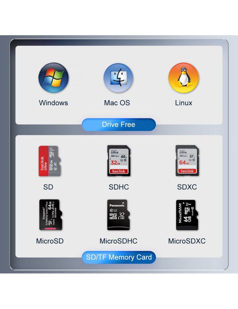 | ПОРТОВЕ | Micro SD Micro SD HC Micro SD XC SD SD HC SD XC TF card |