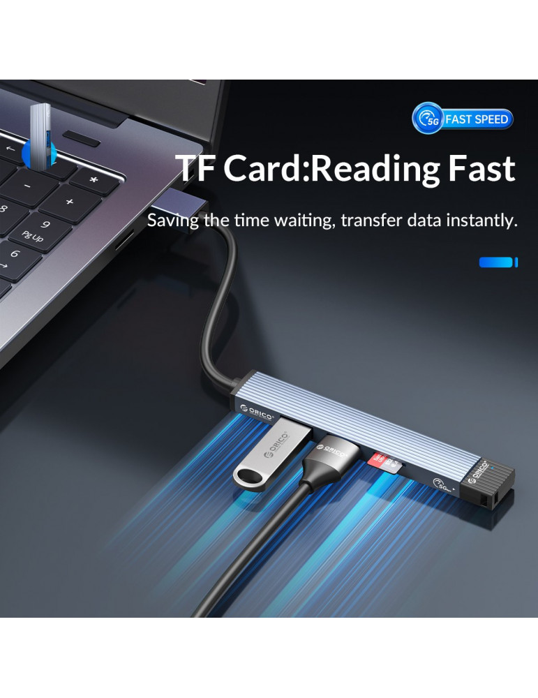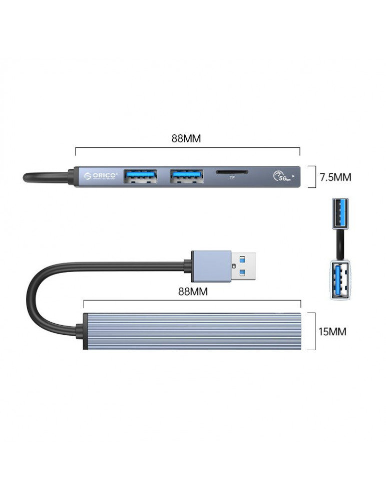 Хъб Orico USB3.0/2.0 HUB 3 port card reader, Aluminum - AH-A12F-GY