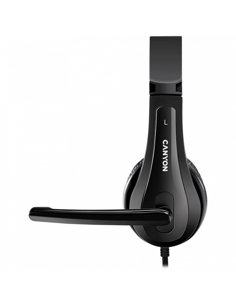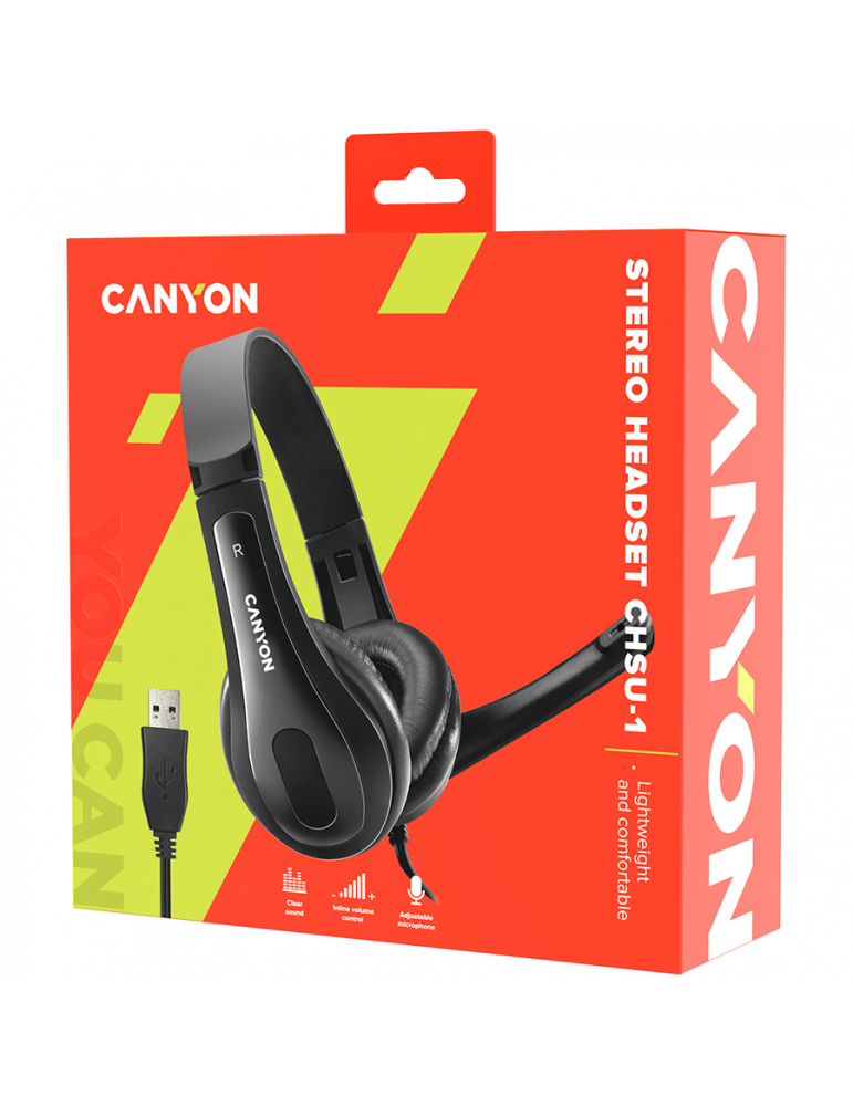 Слушалки Canyon CHSU-1 basic компютърни слушалки с микрофон, USB, leather pads, Flat cable length 2.0m, 160*60*160mm, 0.13kg, черен- CNS-CHSU1B