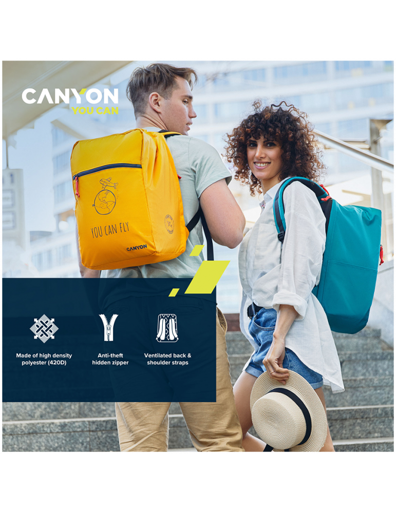 Раница за лаптоп Canyon за 15,6" лаптоп, полиестър, жълт - CNS-CSZ03YW01