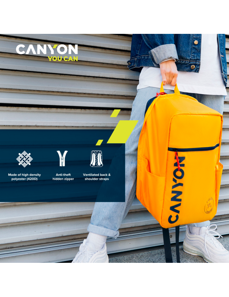 Раница за лаптоп Canyon за 15,6" лаптоп, полиестър, жълт - CNS-CSZ02YW01