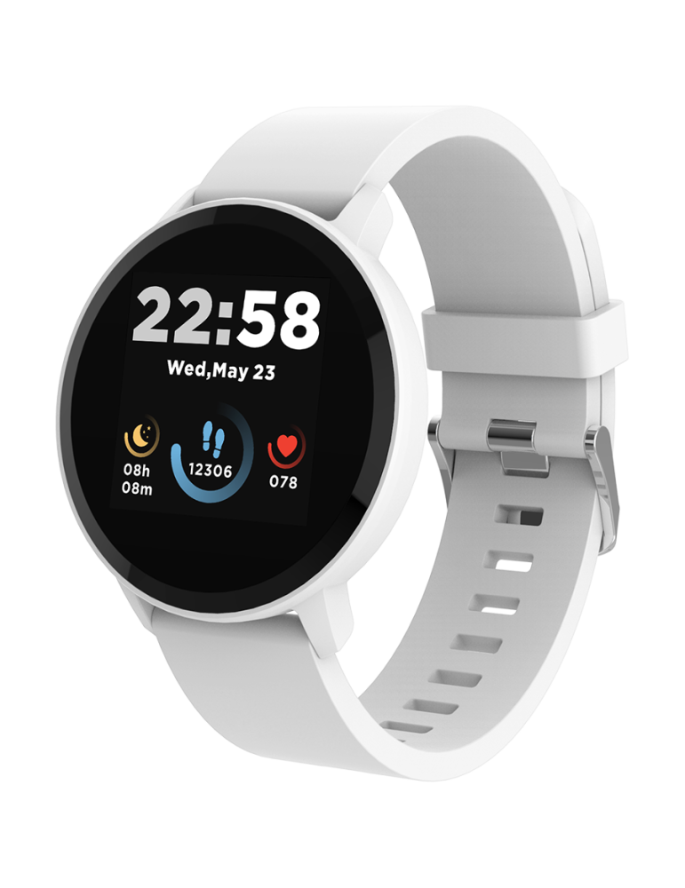 Smart watch, 1.3inches IPS full touch screen, Round watch, IP68 waterproof, multi-sport mode, BT5.0, compatibility with iOS and android, Silver white , Host: 25.2*42.5*10.7mm, Strap: 20*250mm, 45g - CNS-SW63SW