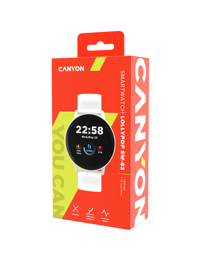 Смарт часовник Canyon CNS-SW63PP, 1.3"(3.30 cm) TFT дисплей, до 4 дни време на работа, Bluetooth 5.0, IP68, съвместим с Android 6.0+, iOS 12.0+, сребрист - CNS-SW63SW