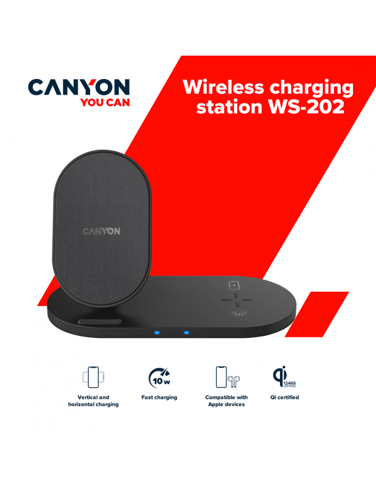 | Commercial Name | Wireless charger Canyon WS-202 10W 2in1 Black (CNS-WCS202) |