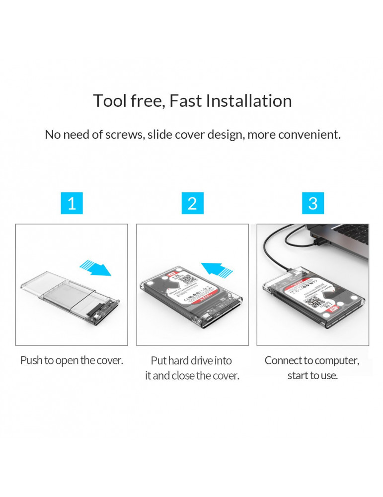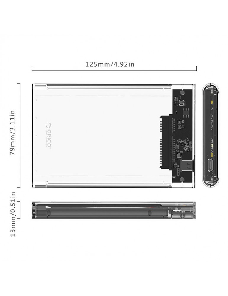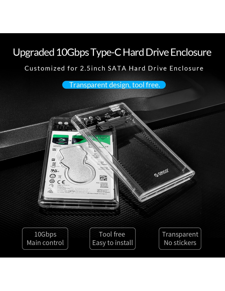 Външна кутия за диск Orico 2.5 inch 10Gbps Type-C Transparent - 2139C3-G2-CR-EP