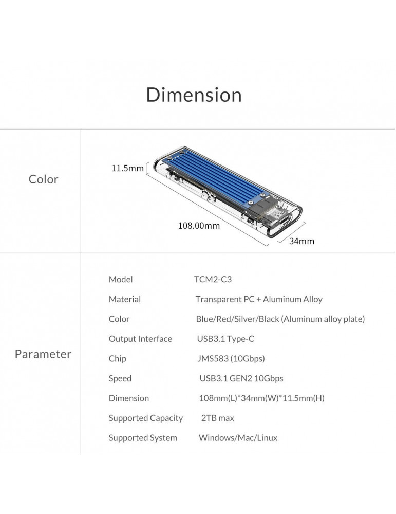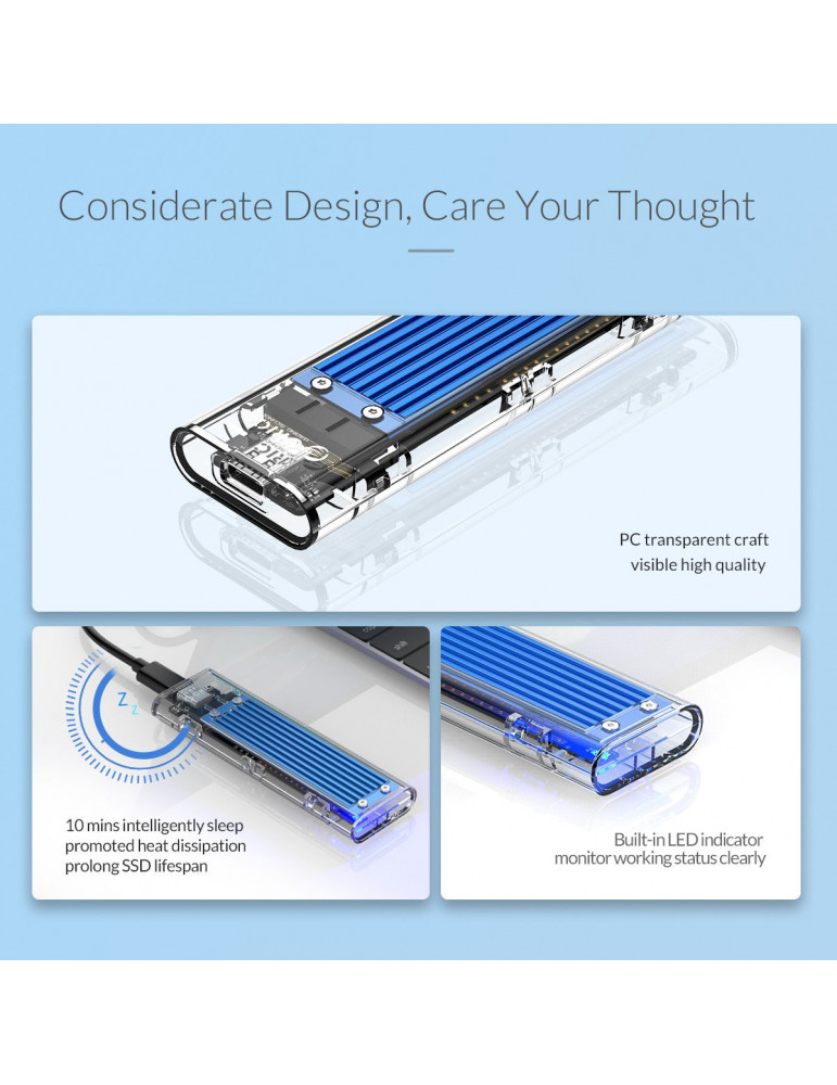 Външна кутия за диск Orico M.2 NVMe M key - USB3.1 Type-C - TCM2-C3-BK-BP