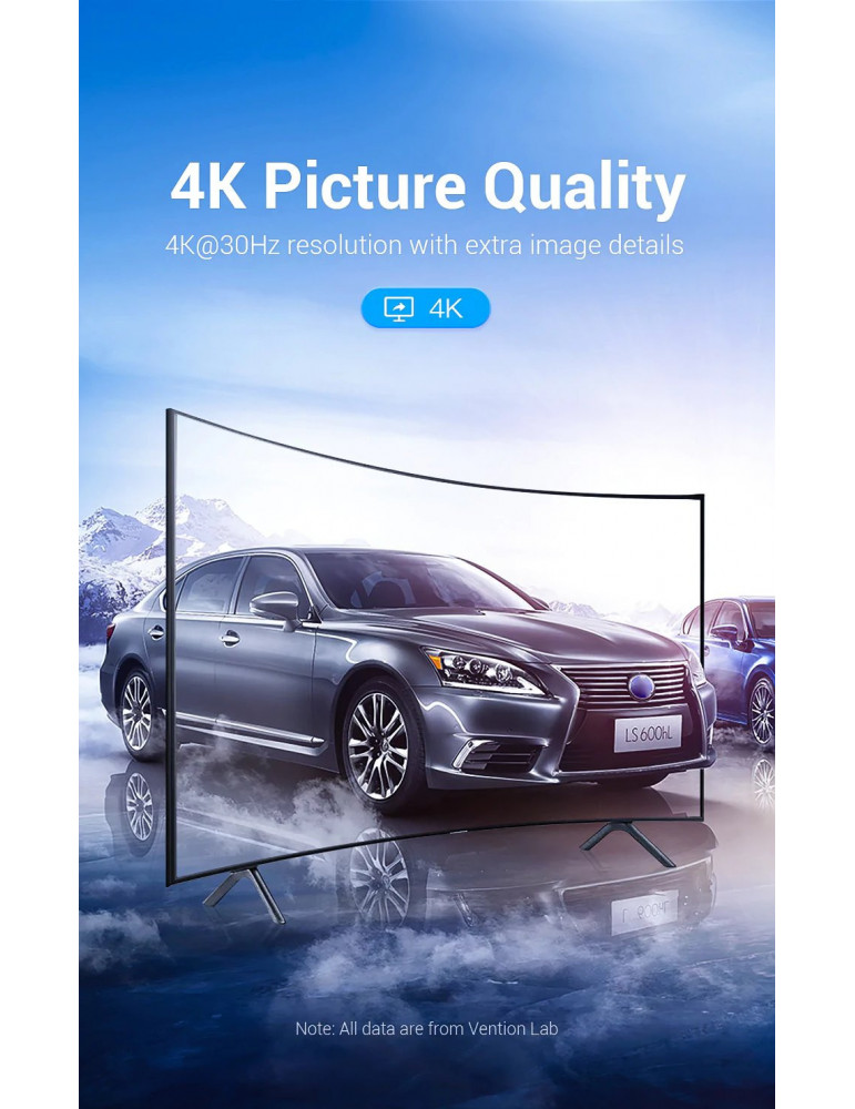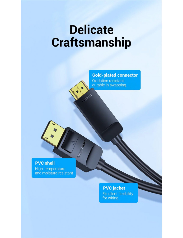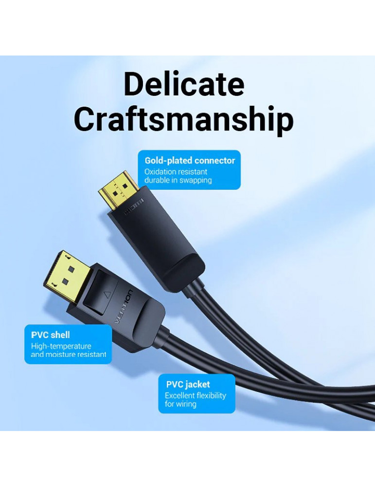 Кабел Vention DisplayPort to HDMI 3.0m - 4K, Gold Plated - HAGBI