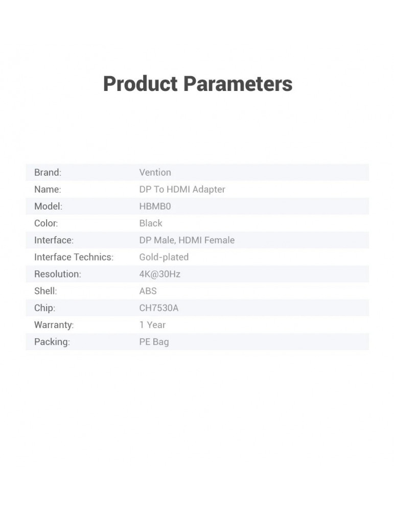 Адаптер Vention DisplayPort M / HDMI F - 4K, Black - HBPB0