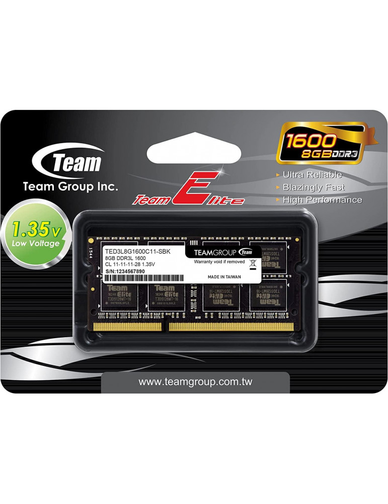 RAM памет Team Group Elite 8GB 1600MHz DDR3L , CL11-11-11-28 1.35V - TED3L8G1600C11-S01