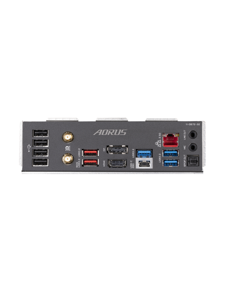 | Свързаност | 1 x USB Type-C; 2 x USB 3.2 Gen 2 Type-A ports (red); 3 x USB 3.2 Gen 1 ports; 4 x USB 2.0/1.1 ports; 2 x SMA antenna connectors (2T2R); 1 x HDMI 2.0 port; 1 x DisplayPort; 1 x RJ-45 port; 1 x optical S/PDIF Out connector; 2 x audio jacks |