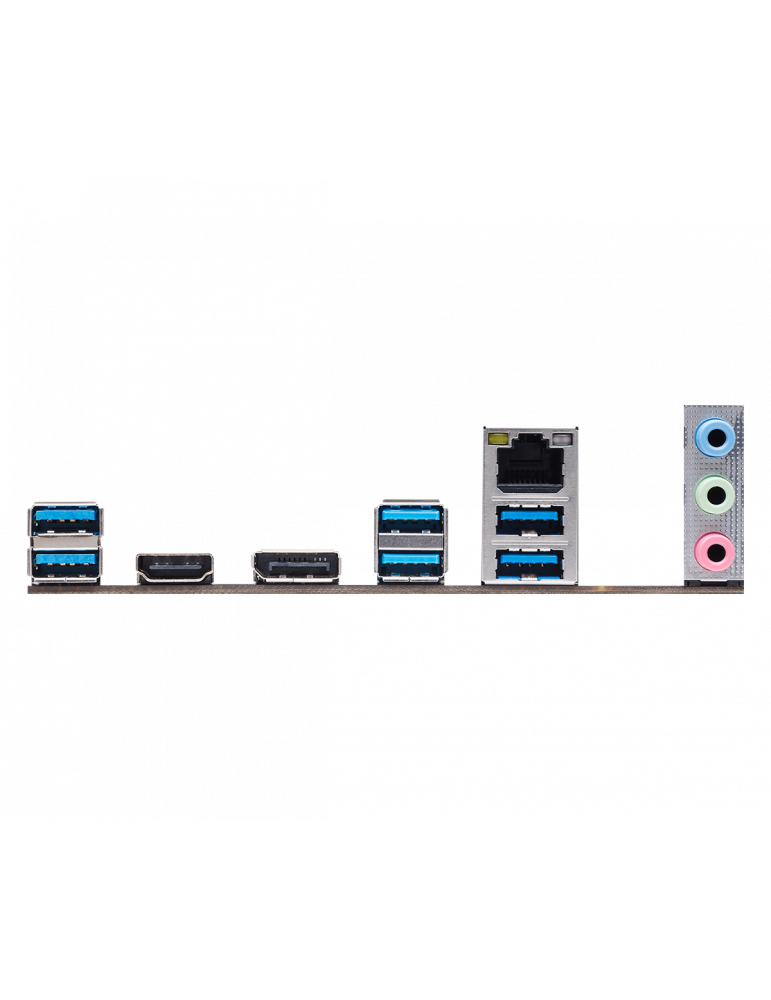 | Вх/Изх | - 3 x Antenna Mounting Points; - 1 x HDMI Port; - 1 x DisplayPort 1.4; - 2 x USB 3.2 Gen2 Ports (10 Gb/s) (ReDriver) (Supports ESD Protection); - 4 x USB 3.2 Gen1 Ports (ASMedia ASM1074 hub) (Supports ESD Protection); - 1 x RJ-45 LAN Port with LED (ACT/LINK LED and SPEED LED); - HD Audio Jacks: Line in / Front Speaker / Microphone |
