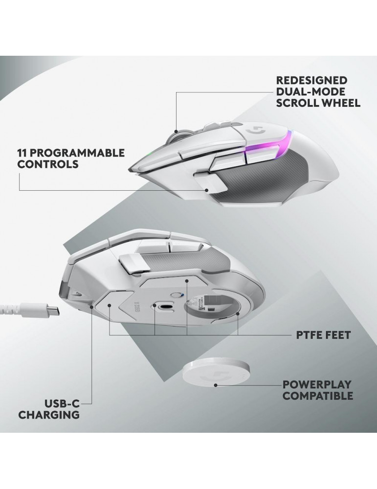 Геймърска мишка Logitech G502 X Plus White Lightsync RGB - 910-006171