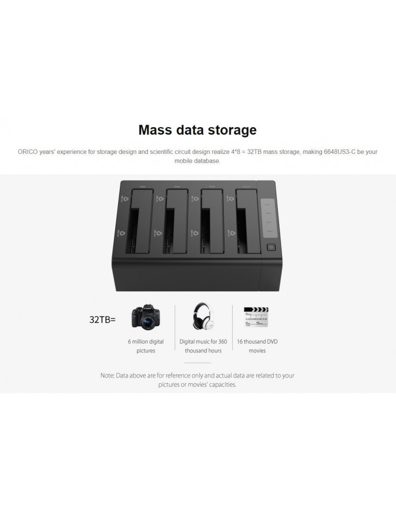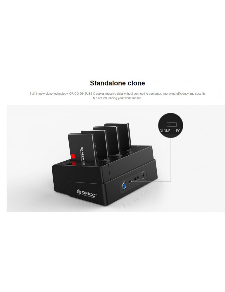 Докинг станция за дискове Orico Storage / HDD / SSD Dock / Duplicator - 4x 2.5 and 3.5 inch USB3.0, black - 6648US3-C