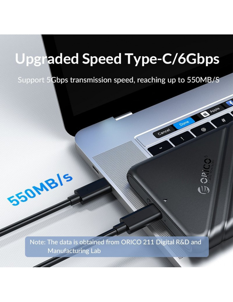 Външна кутия за диск Orico 2.5" TYPE C Black - 25PW1-C3-BK-EP