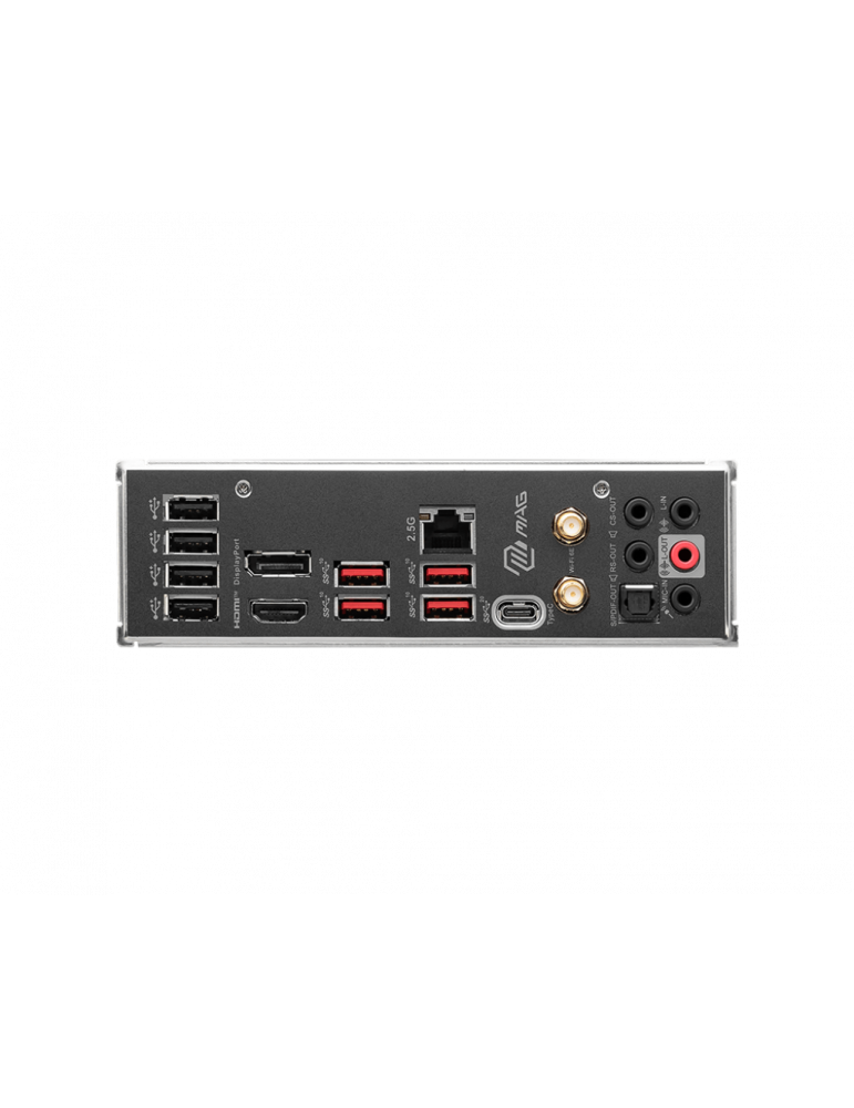 | USB 2.0; DisplayPort 1.4; USB 3.2 Gen 2 10Gbps Type-A; 2.5G LAN Port; Wi-Fi / Bluetooth Antenna; HD Audio Connectors; HDMI™ 2.1 Port; USB 3.2 Gen 2x2 20Gbps Type-C; Optical S/PDIF OUT |