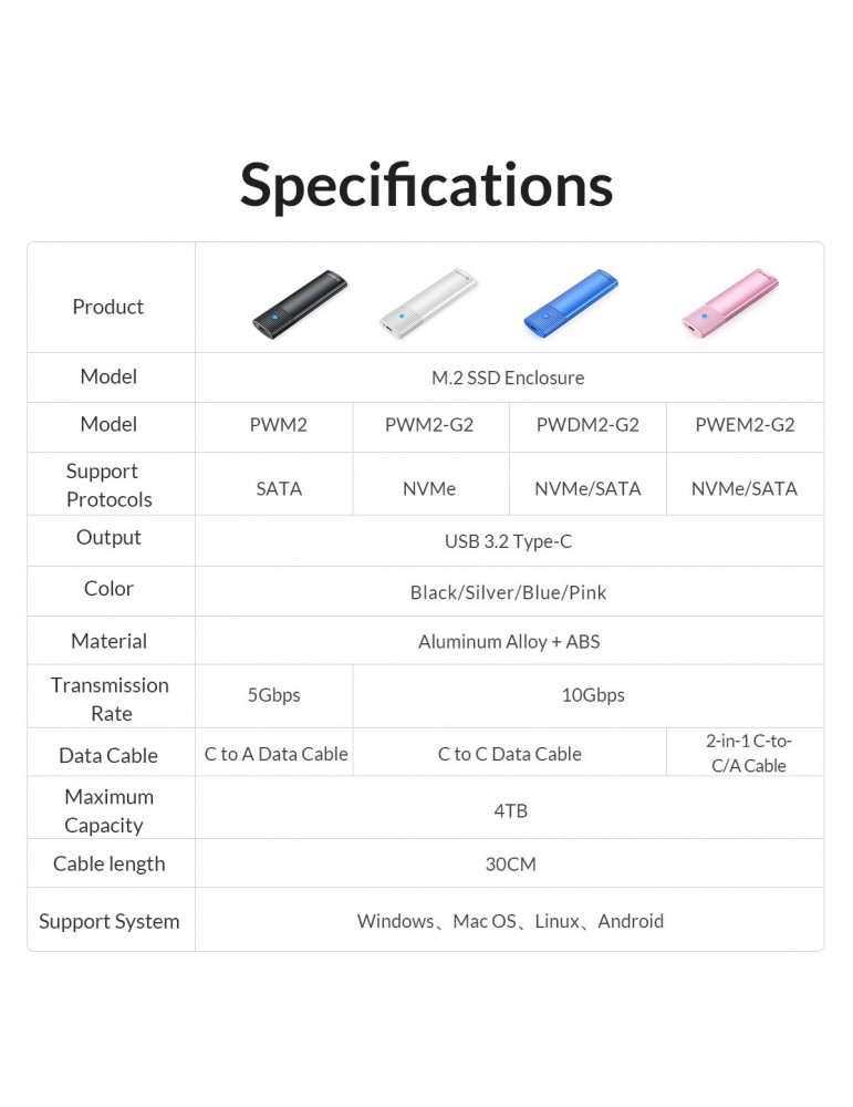Външна кутия за диск Orico M.2 NVMe M/B key 10 Gbps Black - PWM2-G2-BK-EP
