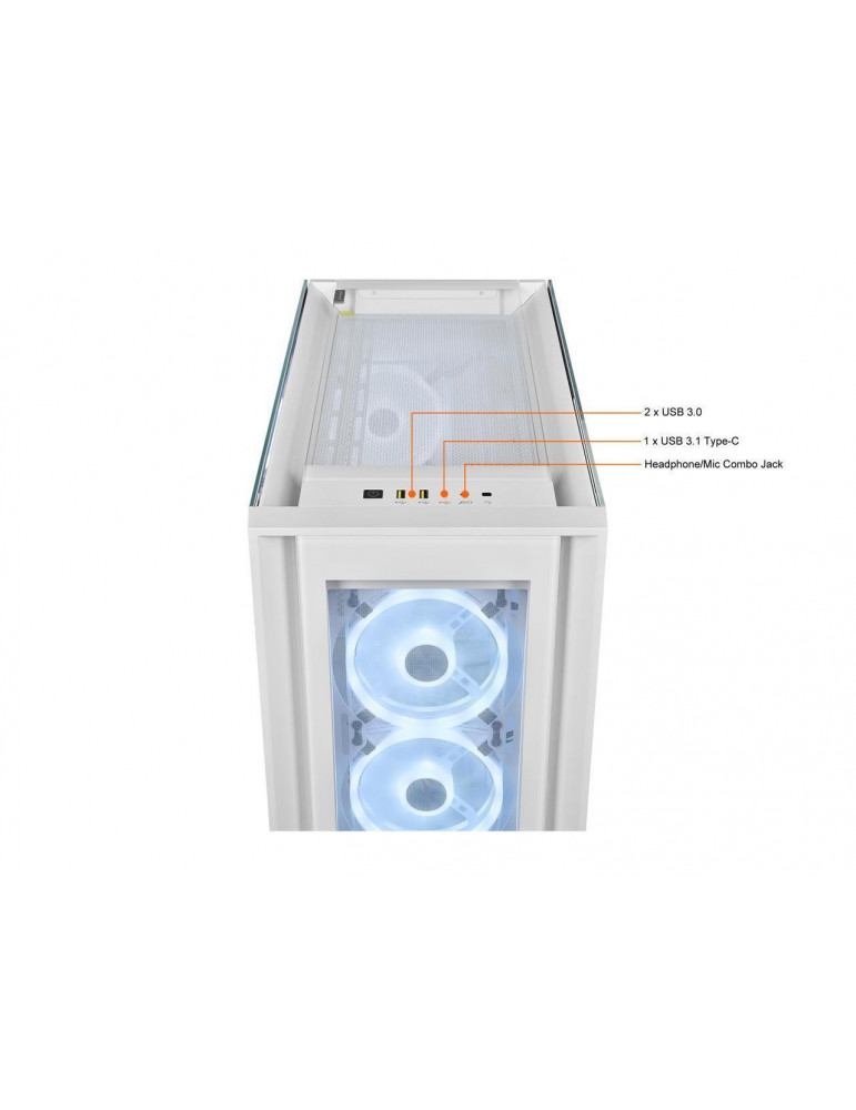 Кутия за компютър Corsair iCUE 5000X RGB QL Edition Mid Tower, Tempered Glass, Бял - CC-9011233-WW