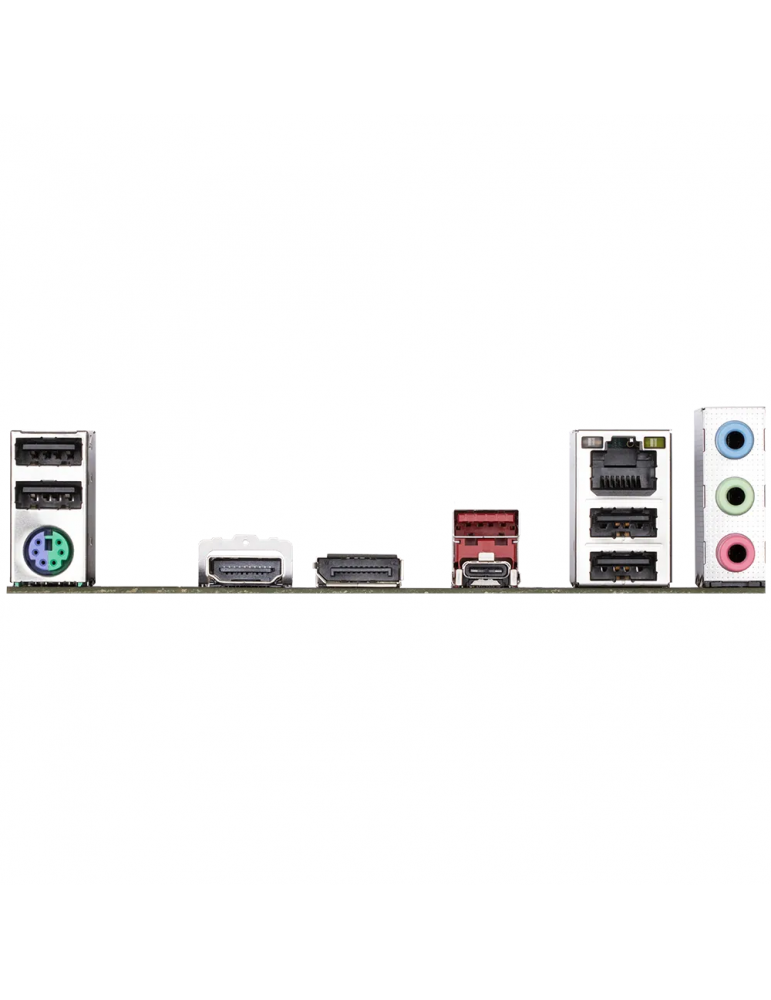 | Вх/Изх | 1 x PS/2 keyboard/mouse port; 1 x USB Type-C® port, with USB 3.2 Gen 2x2 support; 1 x USB 3.2 Gen 2 Type-A port (red); 4 x USB 2.0/1.1 ports; 1 x HDMI port; 1 x DisplayPort; 1 x RJ-45 port; 3 x audio jacks |