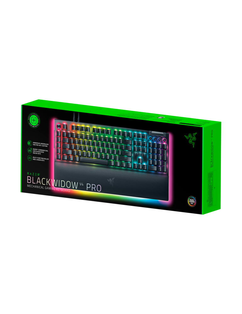 Геймърска клавиатура Razer BlackWidow V4 Pro, Gaming Keyboard, Mechanical Gaming Keyboard, US Layout, Green Switch, RGB Chroma, command dial, macro keys, magnetic wrist rest with underglow, USB Passthrough, up to 8K Poling Rate, detachable USB-C cable - RZ03-04680100-R3M1
