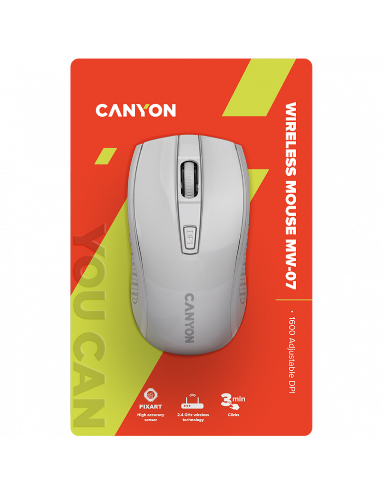 Безжична мишка Canyon MW-7, 2.4GHz, 6 бутона, бял - CNE-CMSW07W