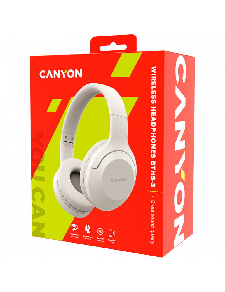 Слушалки Canyon BTHS-3, Bluetooth headset,with microphone, BT V5.1 JL6956, battery 300mAh, Type-C charging plug, PU material, size:168*190*78mm, charging cable 30cm and audio cable 100cm, Beige - CNS-CBTHS3BE