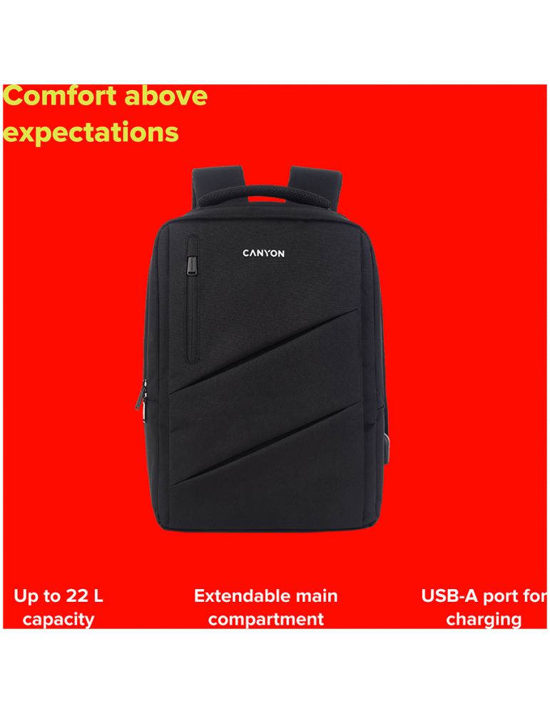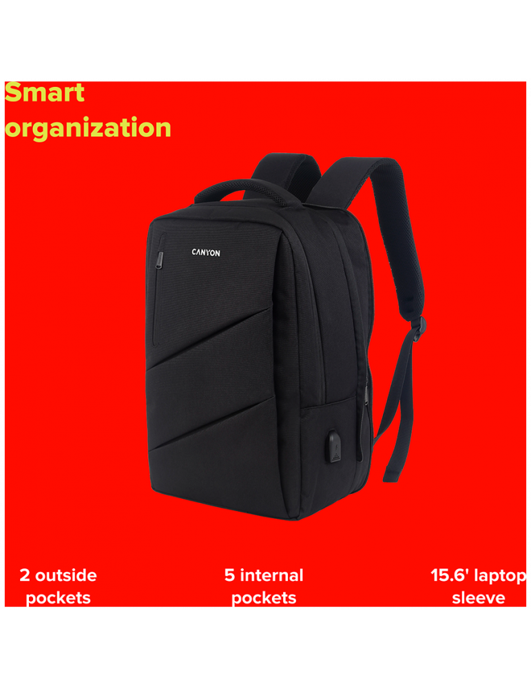 Чанти за лаптоп Canyon Laptop backpack for 15.6 inch, Product spec/size(mm): 400MM x300MM x 120MM(+60MM), Red, EXTERIOR materials:100% Polyester, Inner materials:100% Polyestermax weight (KGS): 12kgs - CNS-BPE5BD1