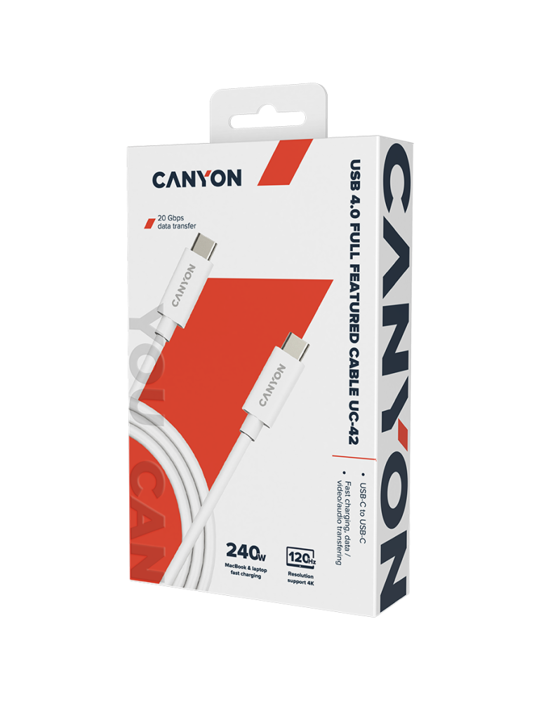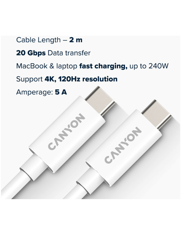 Кабел Canyon UC-42, U4-CC-5A2M-E, USB4 TYPE-C to TYPE-C cable assembly 20G 2m 5A 240W(ERP) with E-MARK, CE, ROHS, white - CNS-USBC42W