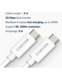 Кабел Canyon UC-42, cable, U4-CC-5A2M-E, USB4 TYPE-C to TYPE-C cable assembly 20G 2m 5A 240W(ERP) with E-MARK, CE, ROHS, white - CNS-USBC42W