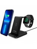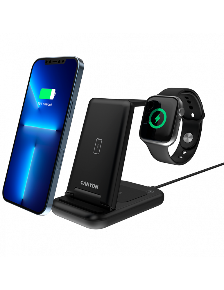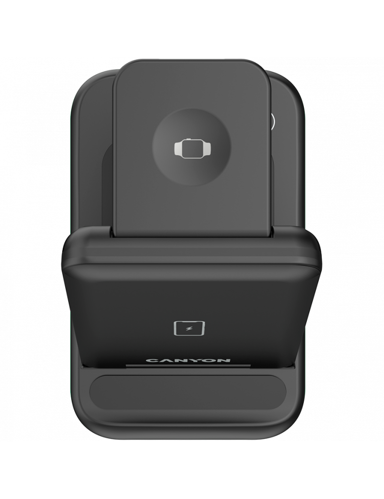 Безжично зарядно Canyon WS- 304 Foldable 3in1 Wireless charger, Type c to USB-A cable length 1.2m, Black - CNS-WCS304B