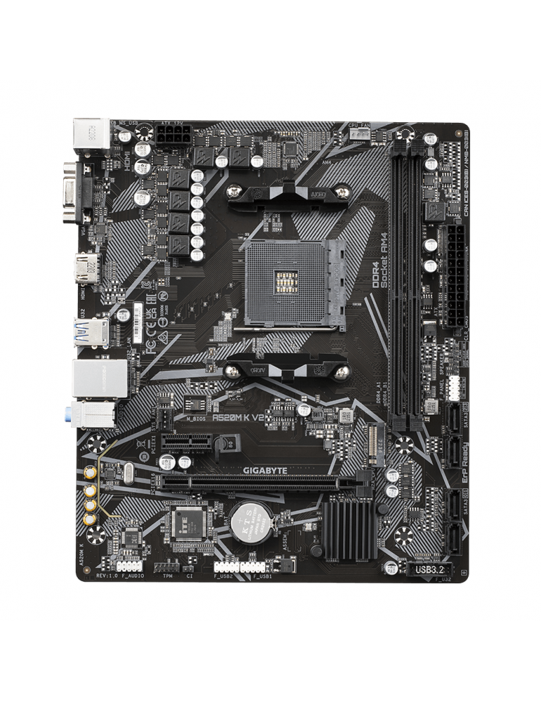 Дънна платка Gigabyte A520M K V2, Socket AM4, mATX, 2xDDR4, M.2 NVMe - A520M K V2