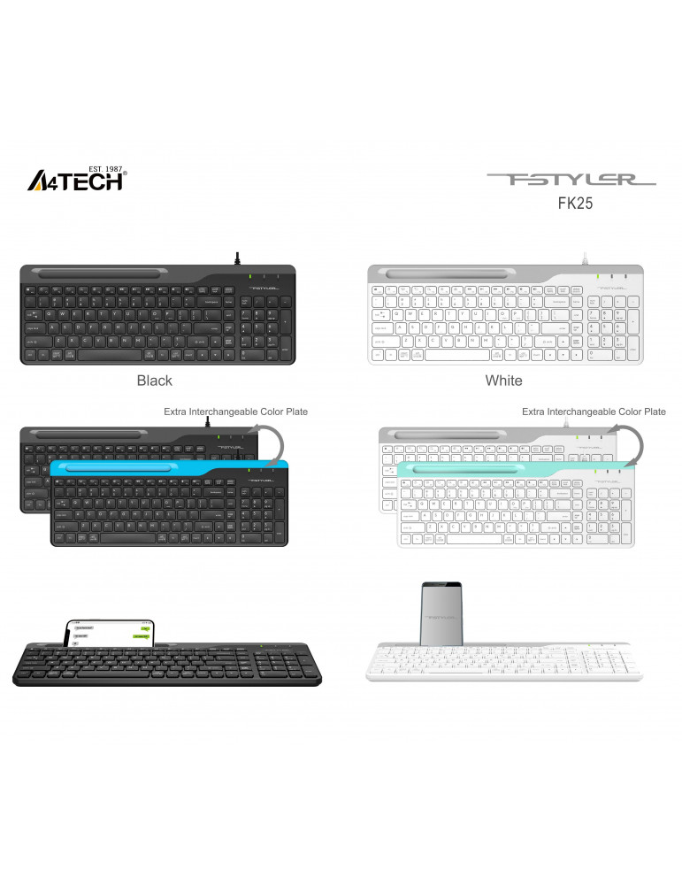 Клавиатура A4tech Fstyler FK25, Стойка за телефон, Кирилизирана, Черен