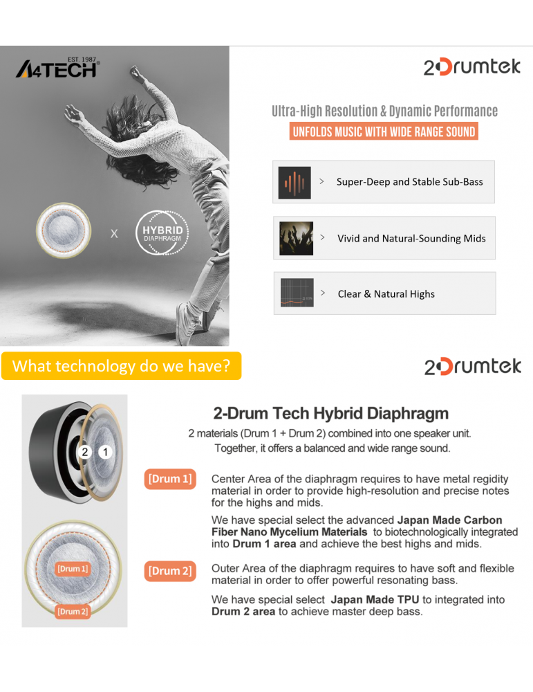 Bluetooth слушалки-тапи A4tech B27 2Drumtek, True Wireless, Розов
