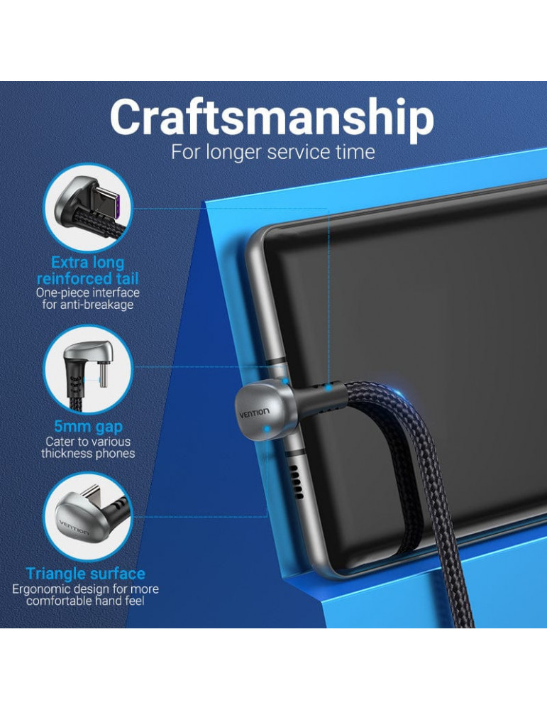 Кабел Vention USB 3.1 Type-C / USB 2.0 AM - 1M Black U-Shaped, Aluminum Alloy 5A - COHHF