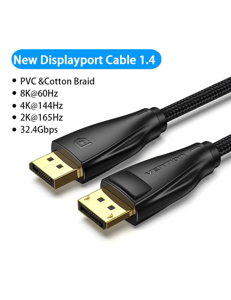 Кабел Vention Display Port 1.4 DP M / M 8K 1.5m - Cotton Braided, Black - HCCBG