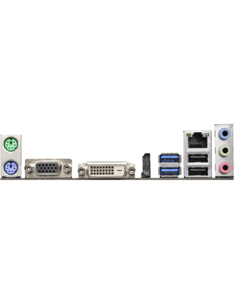 | Свързаност | 1 x PS/2 Mouse Port; 1 x PS/2 Keyboard Port; 1 x D-Sub Port; 1 x DVI-D Port; 1 x HDMI Port; 2 x USB 2.0 Ports (Supports ESD Protection (ASRock Full Spike Protection)); 2 x USB 3.1 Gen1 Ports (Supports ESD Protection (ASRock Full Spike Protection)); 1 x RJ-45 LAN Port with LED (ACT/LINK LED and SPEED LED); HD Audio Jacks: Line in / Front Speaker / Microphone |