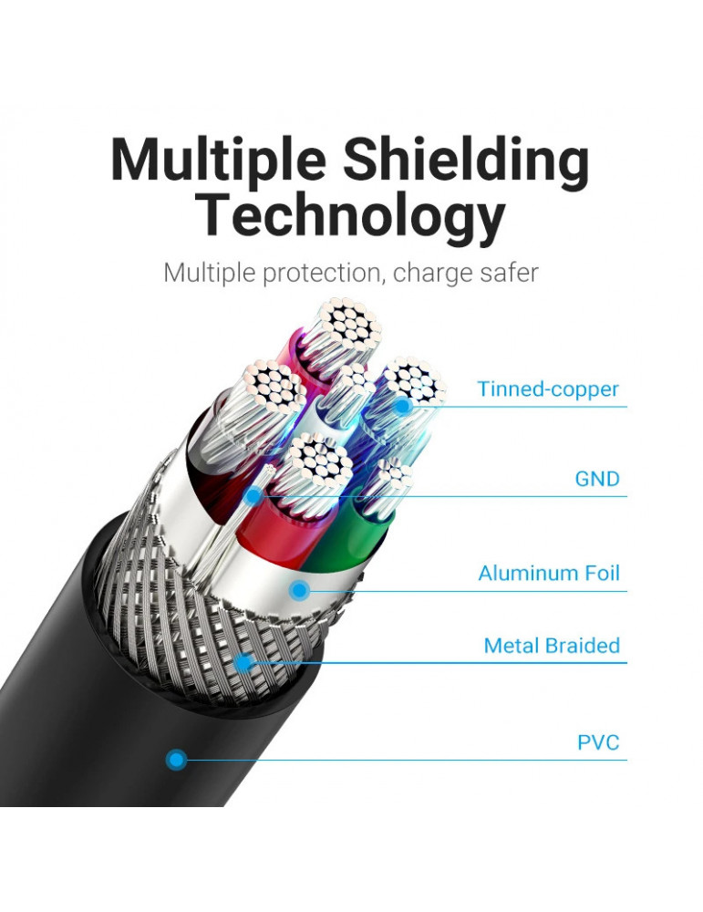 Кабел Vention USB 3.1 Type-C / USB 2.0 AM - 2.0M Black 5A Fast Charge - CORBH