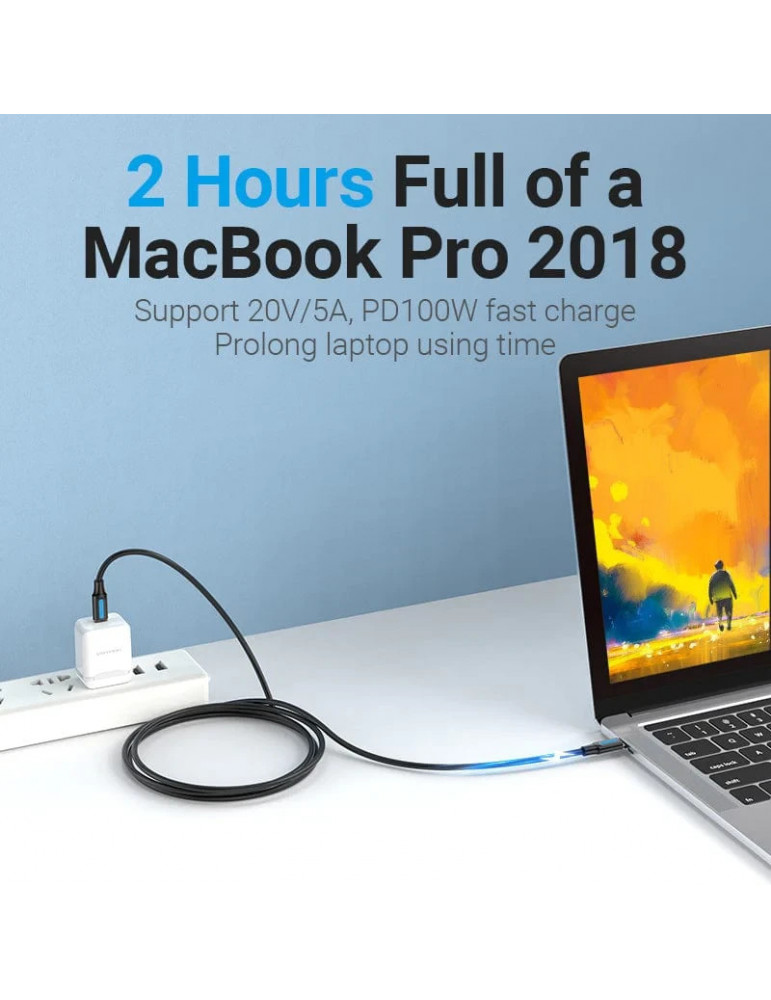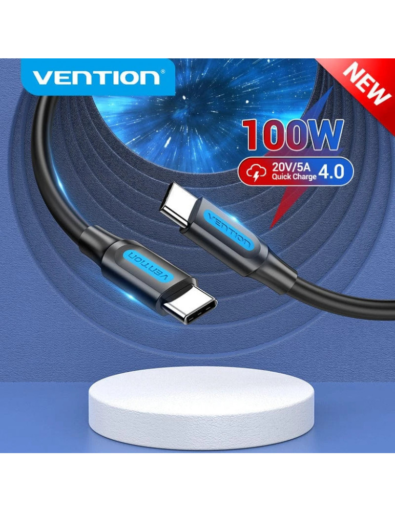 Кабел Vention USB 2.0 Type-C to Type-C - 2M Black 5A Fast Charge - COTBH