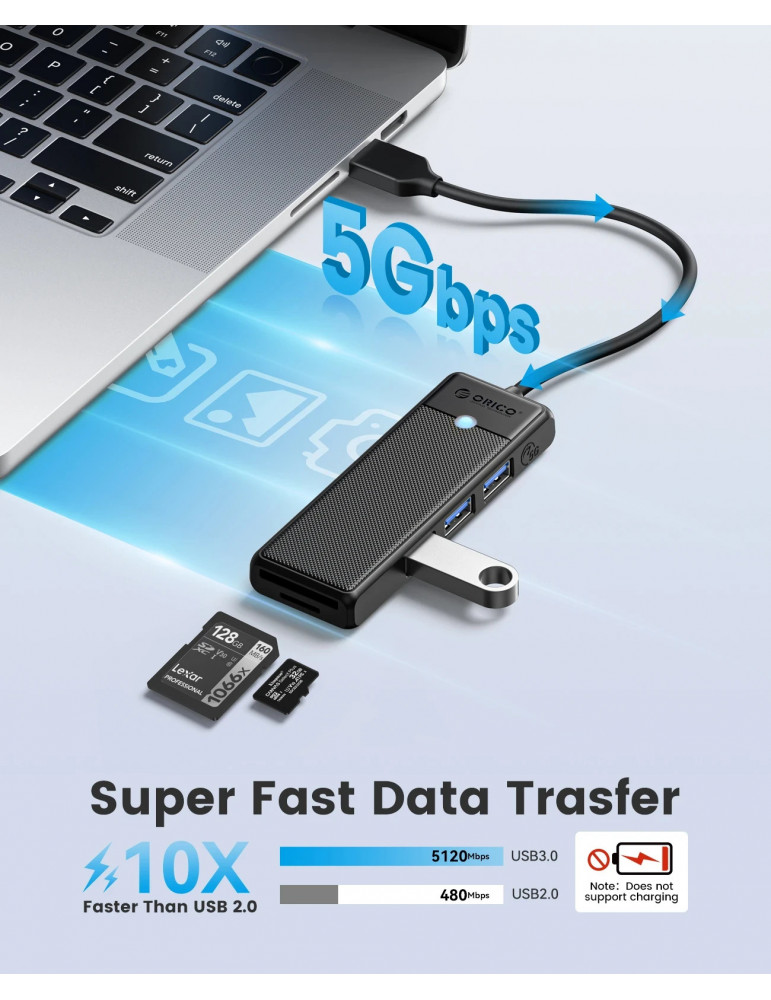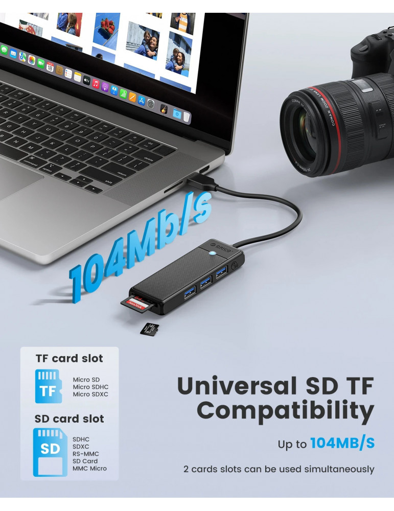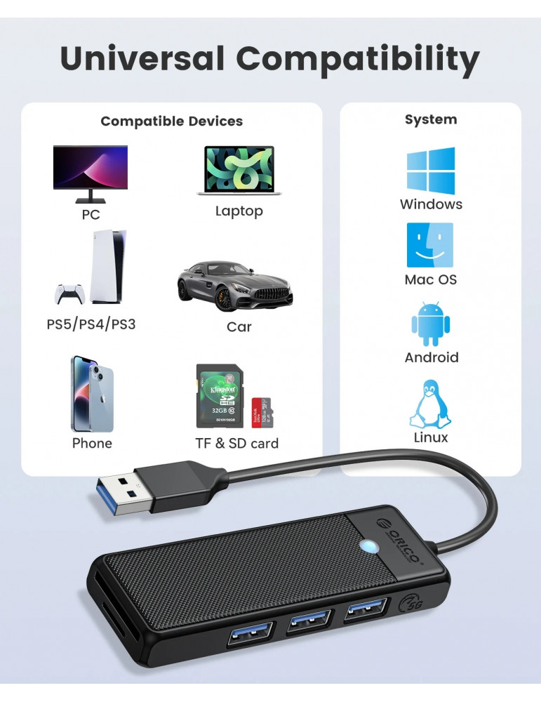 Хъб Orico USB3.0 HUB White - 3 x USB3.0, SD, TF - PAPW3AT-U3-015-WH-EP