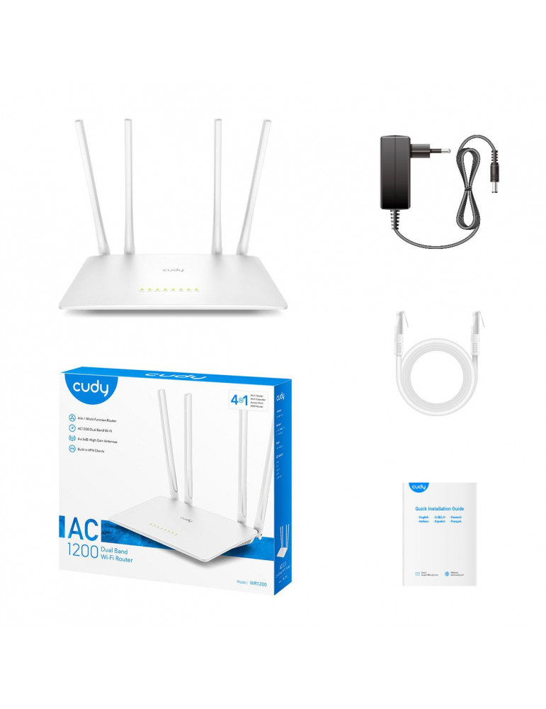 Безжичен рутер Cudy WR1200, 2.4/5 GHz, 300 - 867 Mbps, 10/100