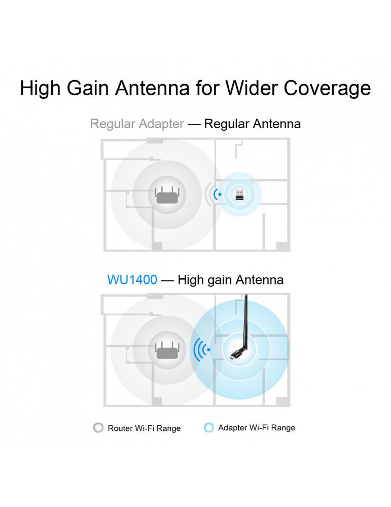 Безжичен адаптер Cudy WU1400, USB 3.0, 2.4/5 Ghz, Външна антена