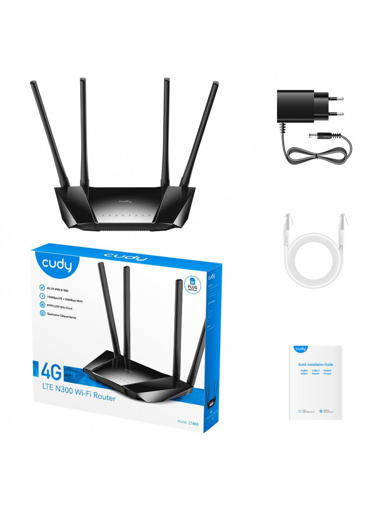 Безжичен рутер Cudy LT400, 4G LTE, 2.4GHz, 300 Mbps, 10/100