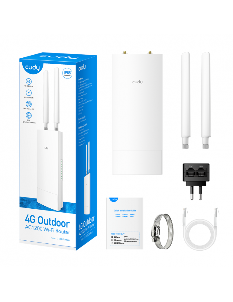Безжичен рутер Cudy LT500 Outdoor, AC1200, 4G, LTE CAT 4, 2.4/5 GHz, 300 - 867 Mbps