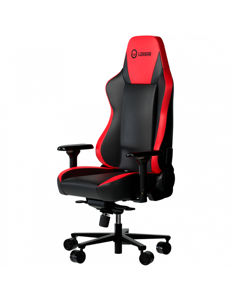 Геймърски стол LORGAR Base 311, PU eco-leather, 1.8 mm metal frame, multiblock mechanism, 4D armrests, 5 Star aluminium base, Class-4 gas lift, 75mm PU casters, Black + red - LRG-CHR311BR