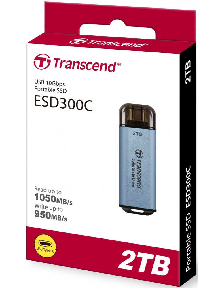 Външен SSD диск Transcend 2TB, USB ESD300C, USB 10Gbps, Type C - TS2TESD300C