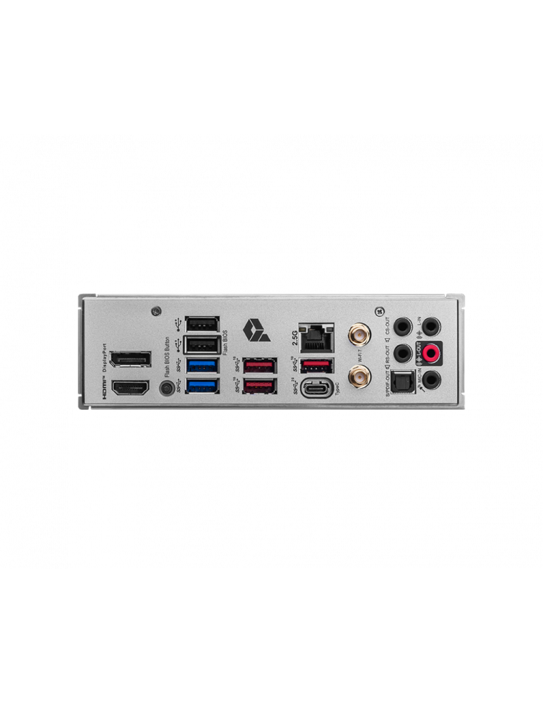 | Вх/Изх | DisplayPort; USB 2.0; 2.5G LAN; Wi-Fi / Bluetooth; Audio Connectors; HDMI™; Flash BIOS Button; USB 3.2 Gen 1 5Gbps (Type-A); USB 3.2 Gen 2 10Gbps (Type-A); USB 3.2 Gen 2x2 20Gbps (Type-C); S/PDIF-OUT |