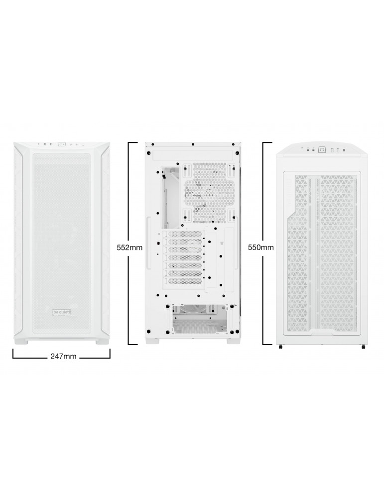 | ДОПЪЛНИТЕЛНИ | 3 Pure Wings 3 140mm PWM fans offer high airflow with quiet operation Exceptionally high airflow thanks to an open mesh design Rotatable PCIe slots enable vertical installation of GPUs Spacious design offers enough room for even the largest components |