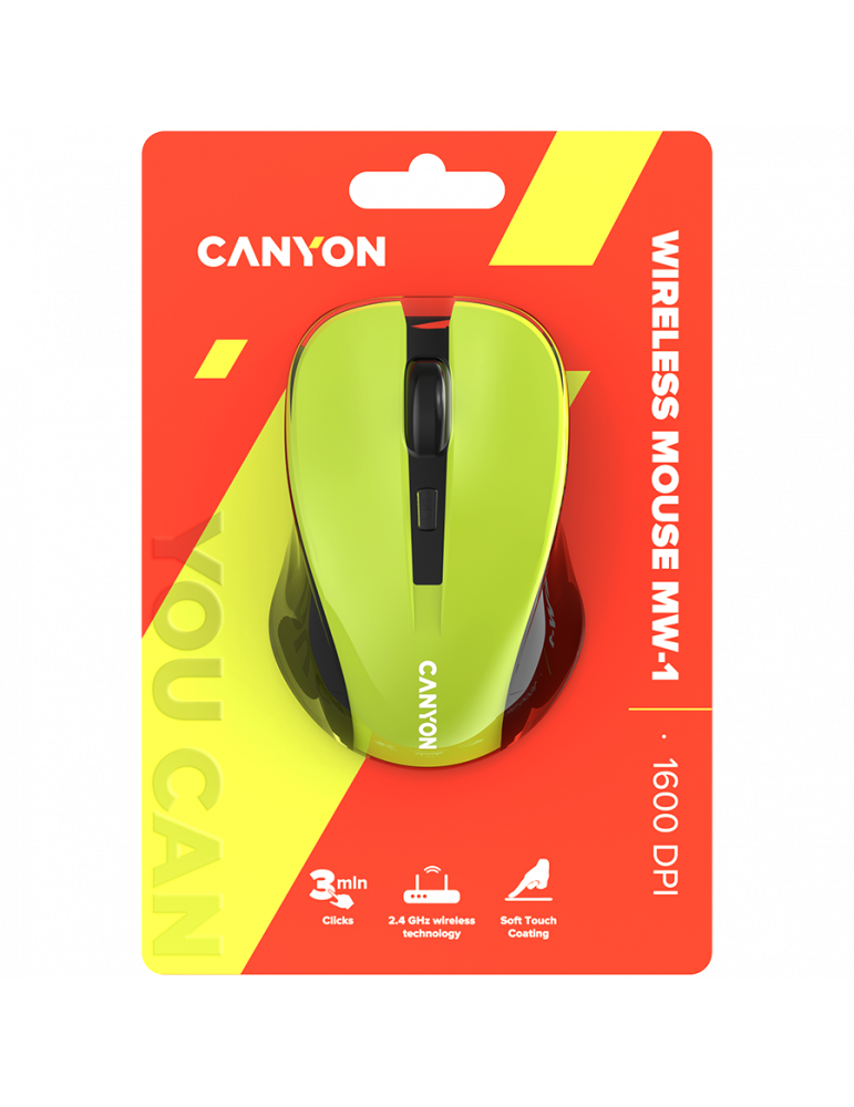Мишка Canyon MW-1, Yellow 2.4GHz wireless optical mouse with 3 buttons, 800/1000/1200 DPI adjustable - CNE-CMSW1Y