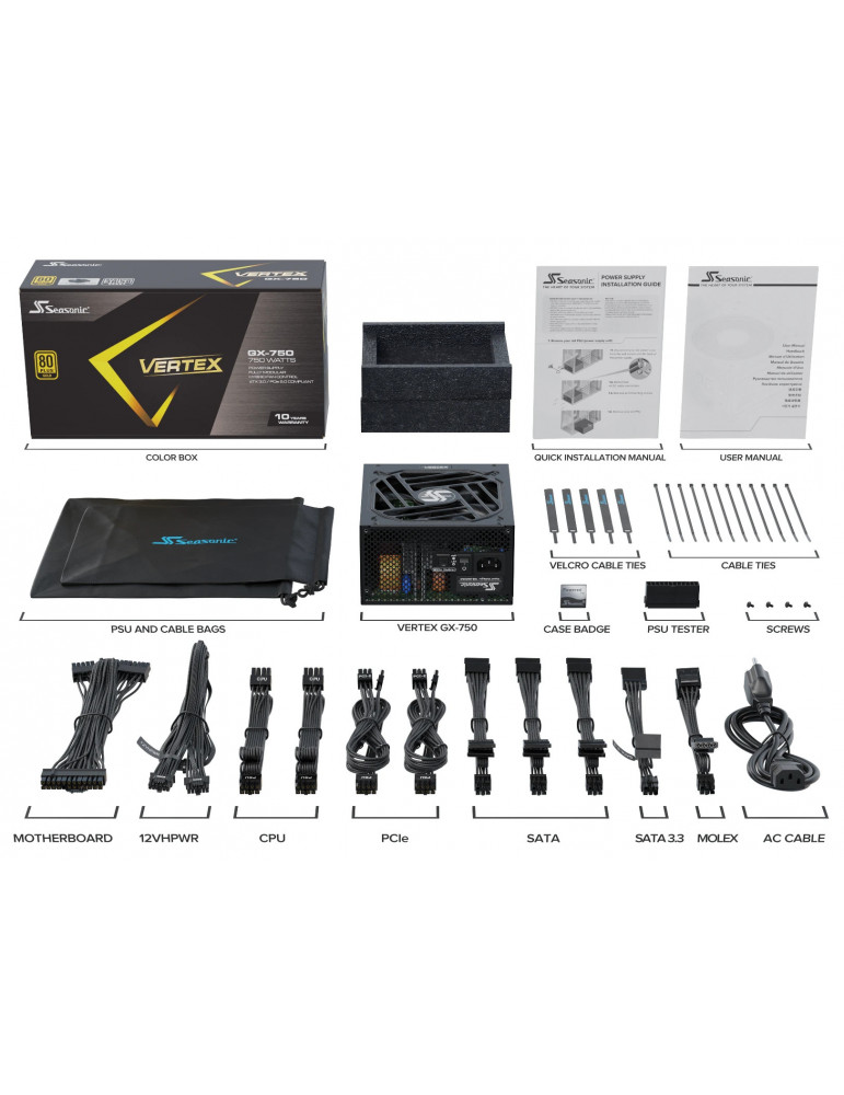 Захранване Seasonic VERTEX GX-750 ATX 3.0 750W Gold - 12751GXAFS