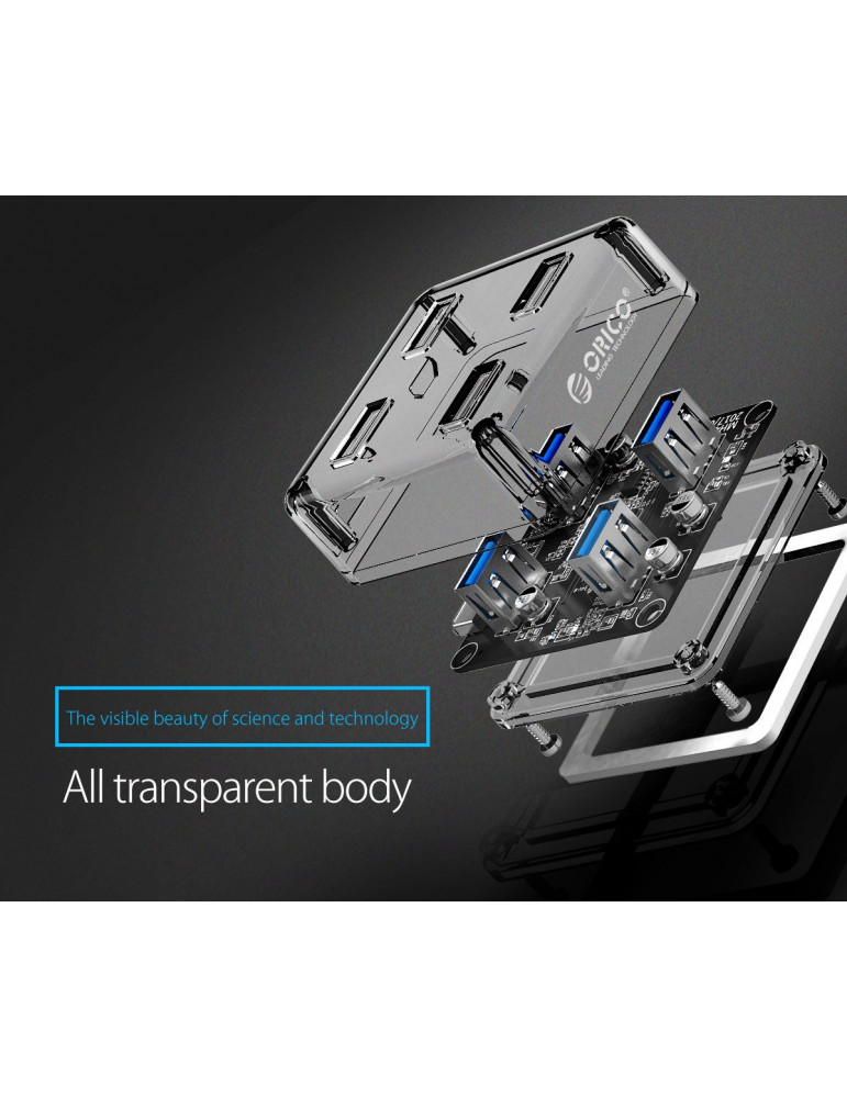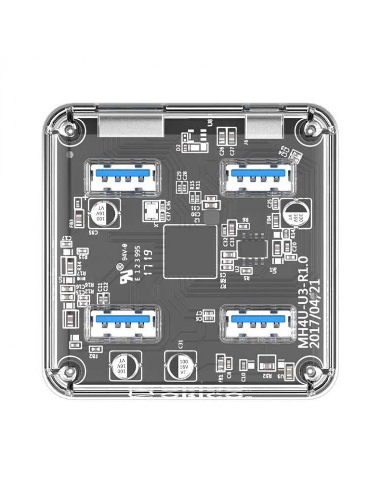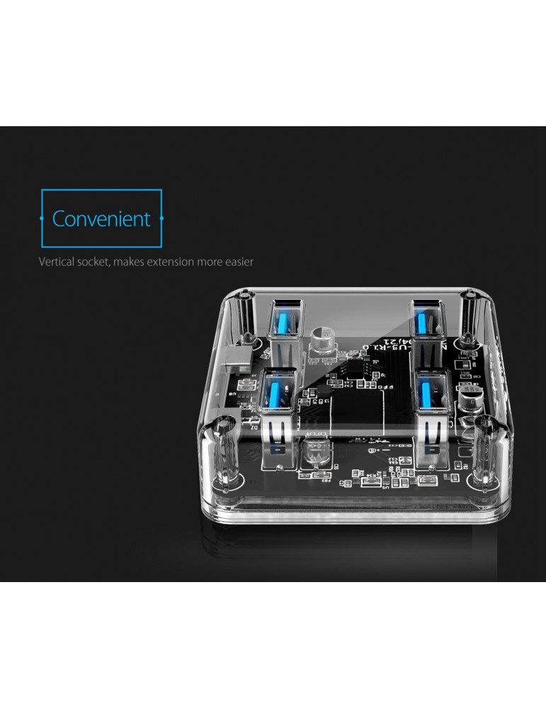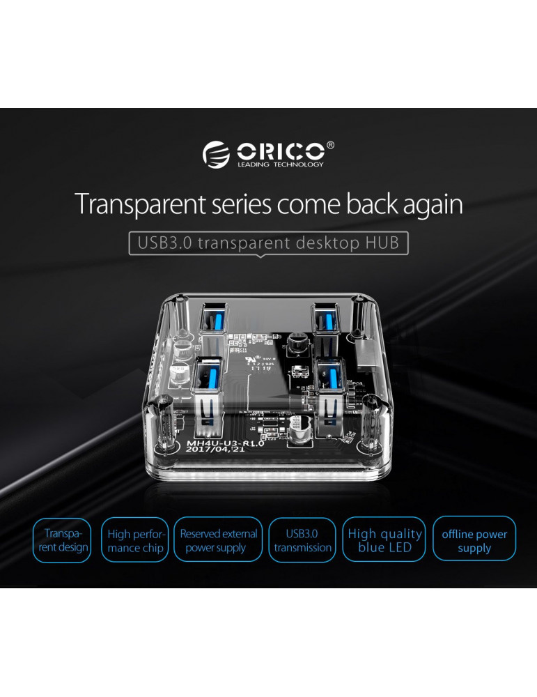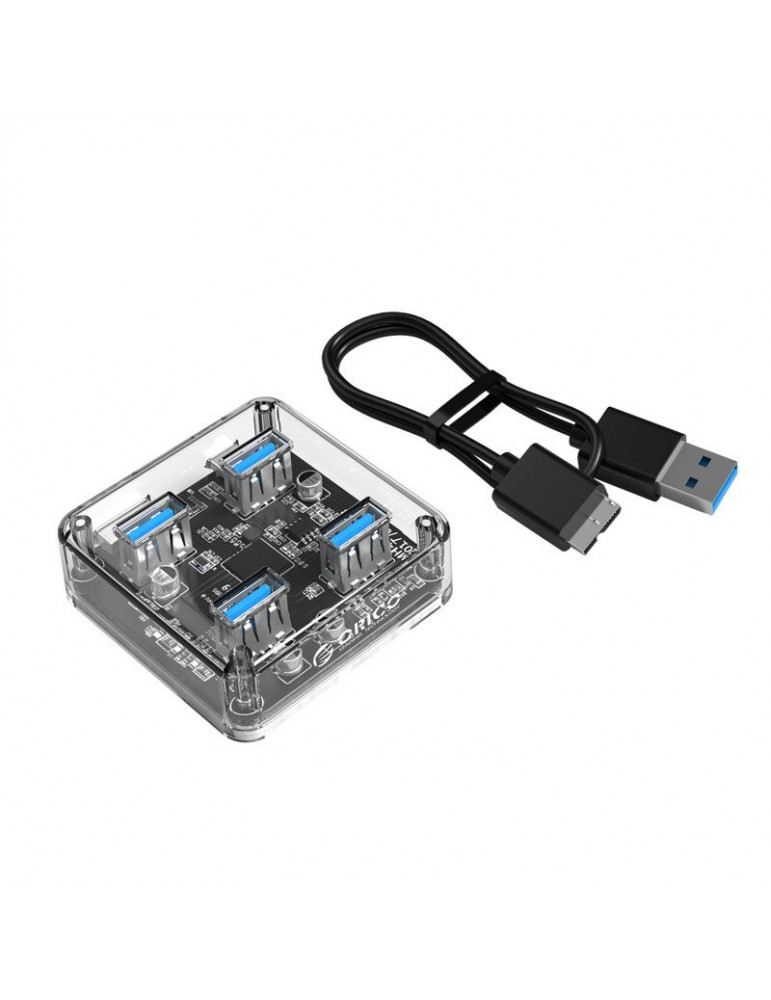 Хъб Orico USB3.0 HUB 4 port transparent, 1m cable - MH4U-U3-10-CR
